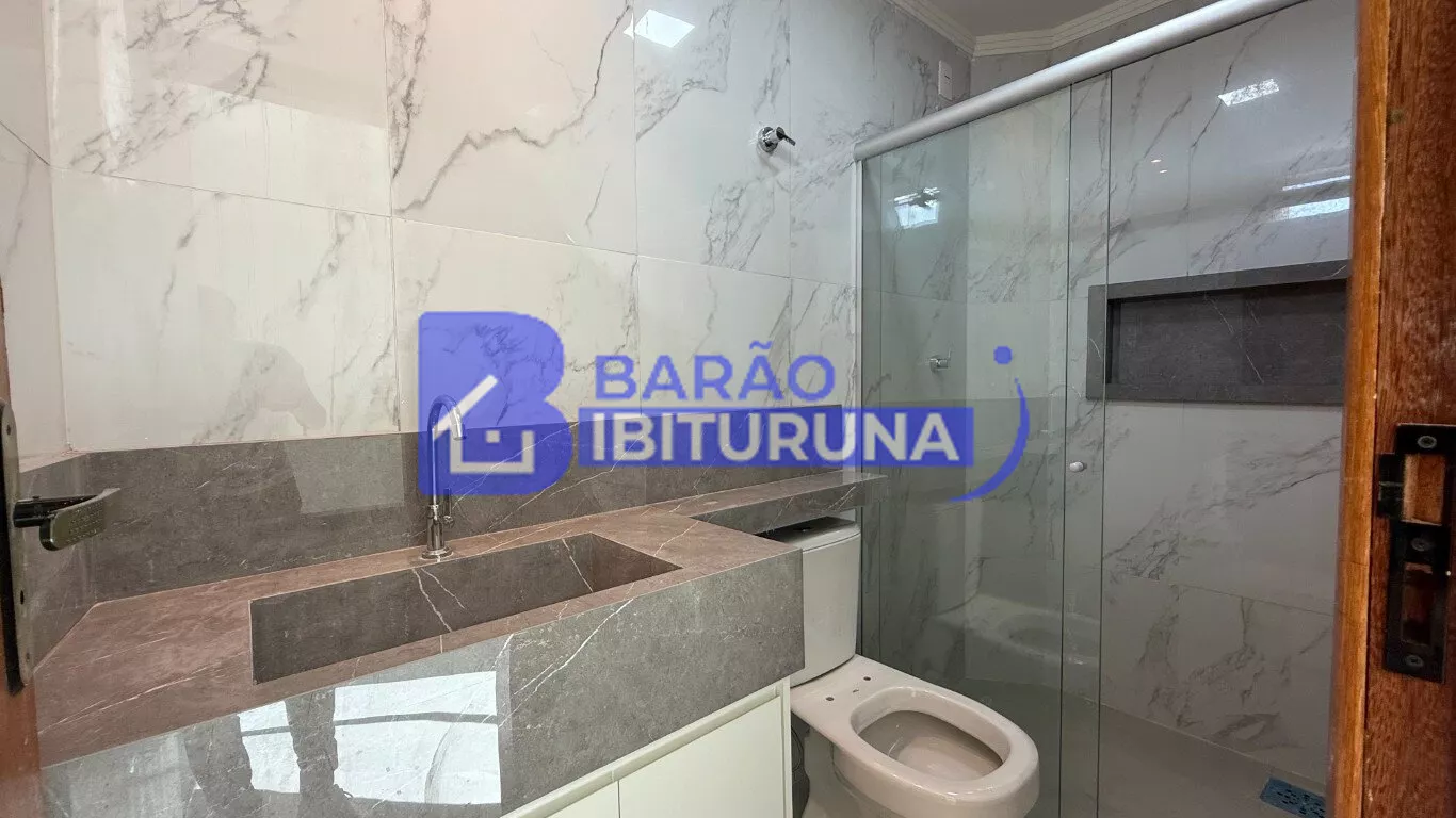 Entre as características adicionais, destacam-se o banheiro privativo, banheiro social, piso em porcelanato de alta qualidade, e um teto rebaixado em gesso que proporciona um acabamento sofisticado. O imóvel também inclui uma vaga de garagem e um jardim aconchegante.